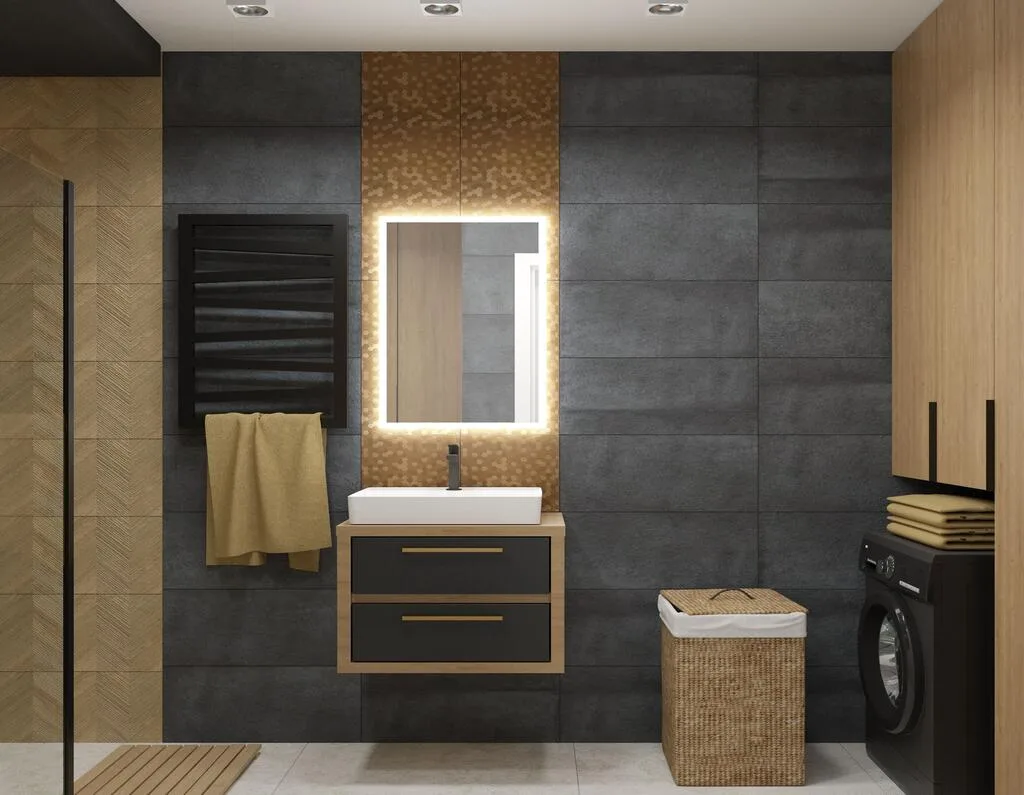 Połączenie naturalnego drewna, modnych lameli i nastrojowego światła – prywatny azyl.
